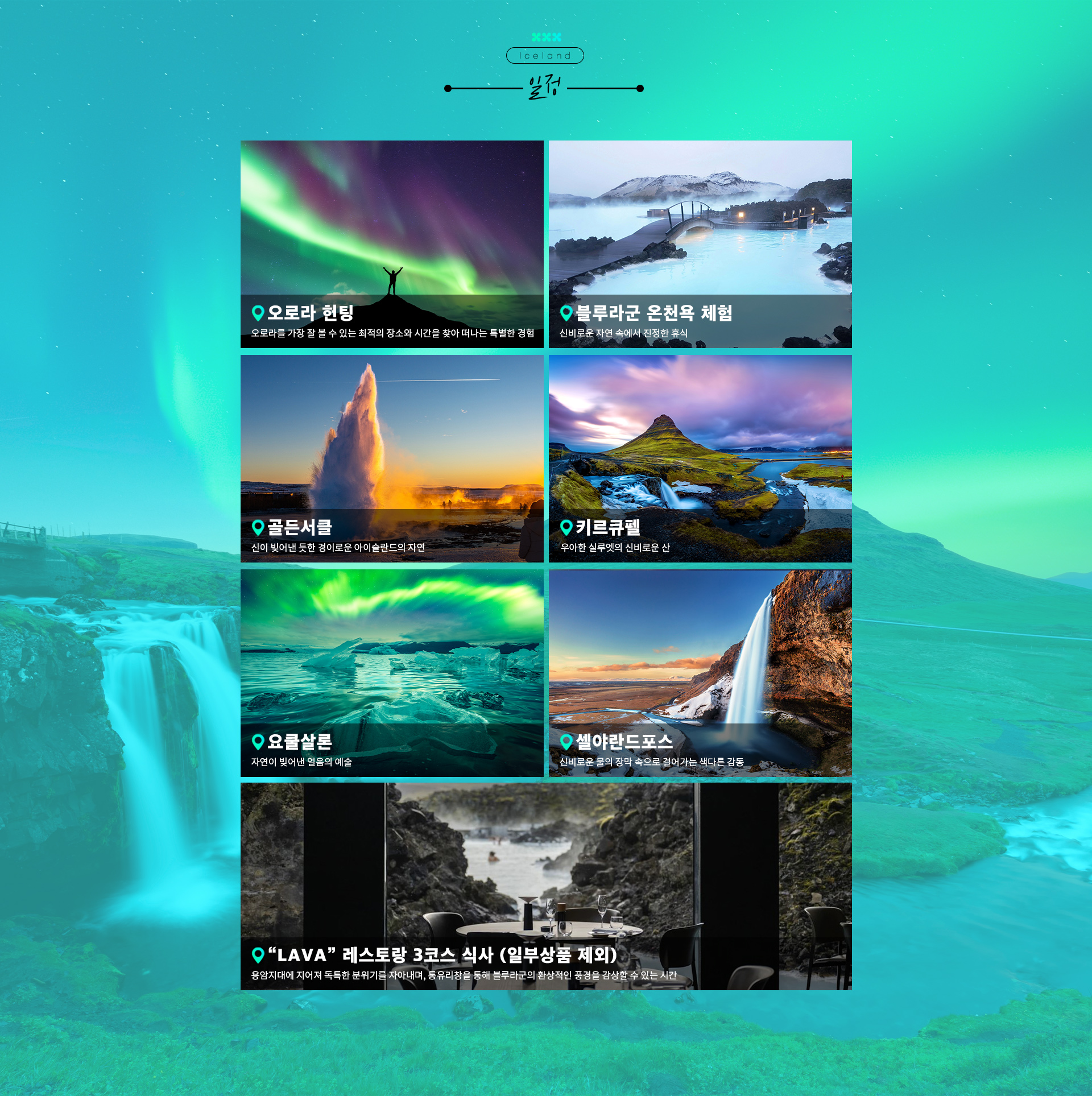 • [THE 비즈팩-핀에어] 얼음과 불과 빛의 향연, 아이슬란드 8일 (오로라헌팅+블루라군온천+골든서클)