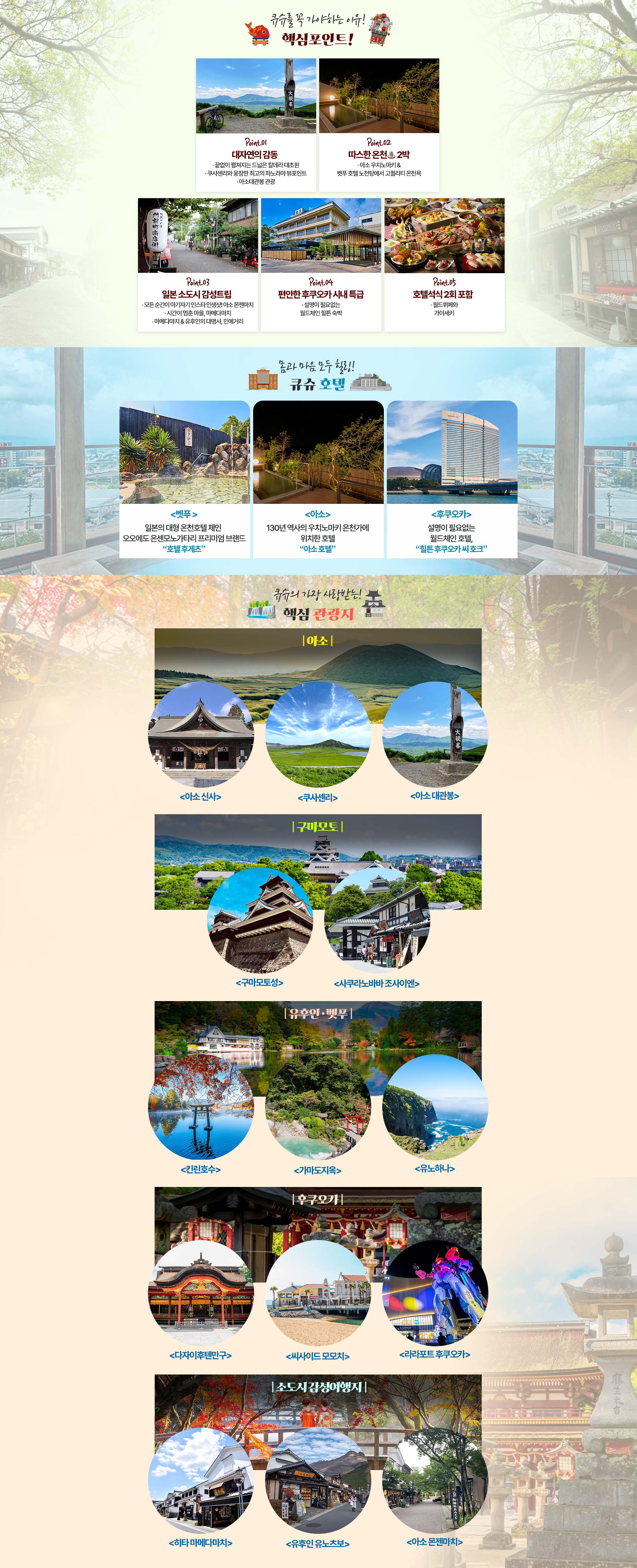 큐슈 4일 | 유후인/벳푸/아소/구마모토 | 대자연의 감동과 따스한 온천♨, 일본 소도시의 정취 속으로