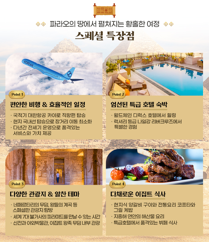[대한항공 카이로 직항] 고대의 찬란한 문명 속으로, 이집트 일주 9일 (나일크루즈/국내선1회/후르가다홍해